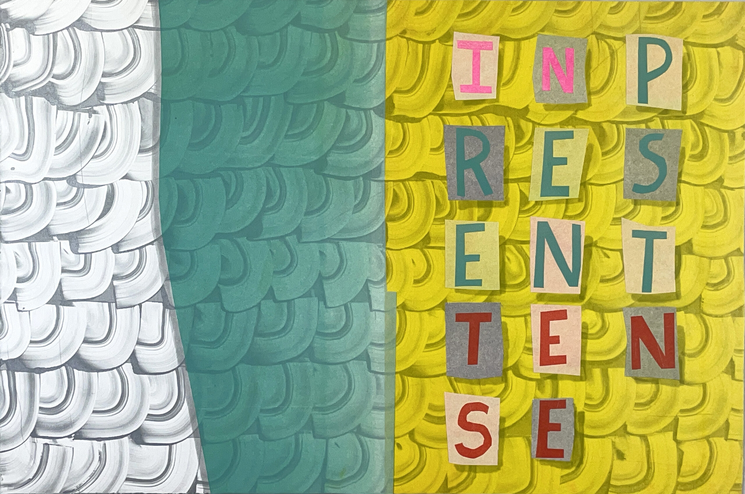 This work is approximately 10′ x 12′. All components were handprinted and are individual, hand cut pieces made from a woodcut plate.